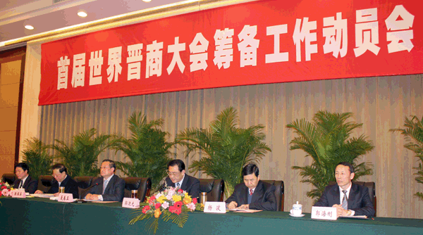 举办首届世界晋商大会是广大海内外晋商期盼已久的一件大事。袁纯清、王君多次对此作出重要批示,指出,举办首届世界晋商大会是今年省委、省政府的一项重点工作,不仅可以推进招商引资、扩大开放,还能利用此活动,建立起与国内外晋商联系、合作的平台和机制;这次大会很有意义,要办出特点,办出特色,达到宣传山西、推荐山西、投资山西,进一步扩大山西改革开放和招商引资的目的。