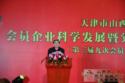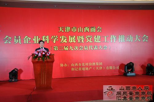 2012年1月9日下午,天津市山西商会会员企业科学发展暨党建工作推动大会(第三届九次会员代表大会),在天津迎宾馆会议厅隆重召开。有关方面领导、来宾和会员企业家,汇聚一堂,共同回顾过去一年商会探索和创新中国特色商会组织建设新路子所取得的新成绩,展望新的一年实现科学发展、转型发展、跨越发展的未来。
