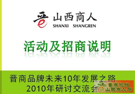 小编通过各种渠道了解到,山西商人网2010年的年会将围绕“晋商品牌未来会如何发展”这个主题展开,据悉如果这次活动顺利召开,它将成为明间活动中第一次以“晋商品牌发展”为主题的活动。