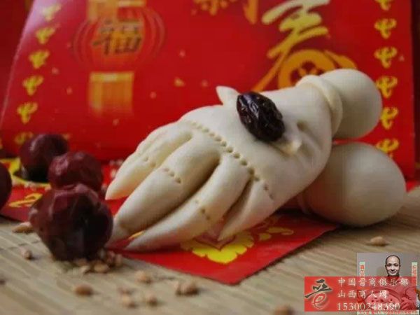 把面团加工成人手的形状,一人一双,象征“勤劳致富”,过去只有男子有资格食用,现在女子也有食用的资格了,说明女子在家庭致富中起到了越来越重要的作用。是年馍中的“致富馍”。