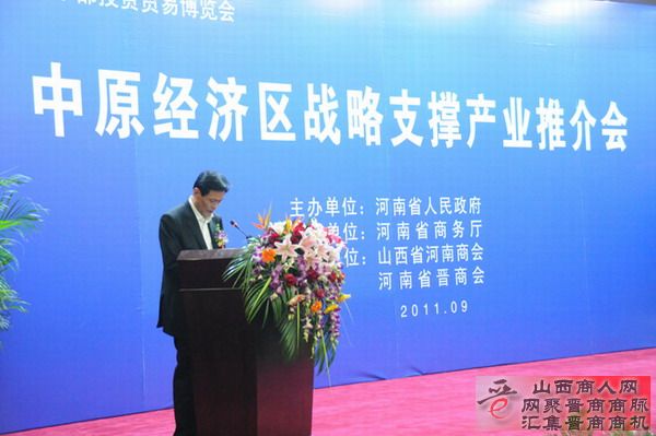 是家乡的山水养育了我们,给予了我们恢弘的历史、光荣的传统;是中原广袤的土地滋润了我们成长壮大,给予了我们纵横驰骋的平台和机遇。中原经济区建设上升至国家战略后,河南的发展必将面临千载难逢的大好机遇。集天时、聚地利,顺应历史潮流而动。我们衷心地希望,晋豫两省深化合作,开放包容,联合互动,以乡招商,以情招商,以商招商,为各地经贸合作搭建更好、更宽松的平台。而我们山西籍企业家将近一步传承晋商精神,凝聚晋商力量,树立晋商形象,促进晋豫交流,推动经济发展,让晋商精神发扬光大,让晋商品牌更加响亮;为中原崛起、为中原经济区建设、为振兴河南,做出我们更大的贡献!