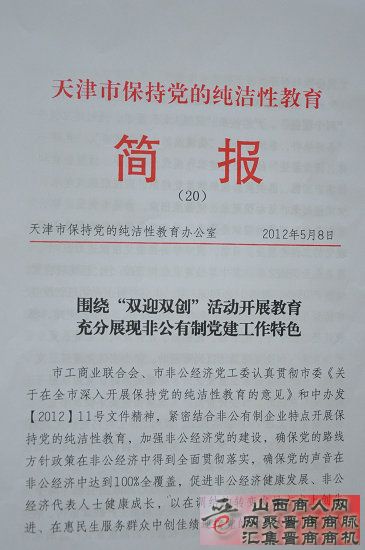 教育办公室向天津市委、市政府主要领导发出了第20期简报。简报上报道了我天津