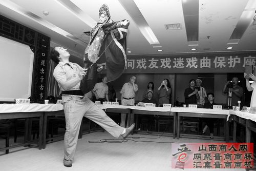 山西是中国戏曲的摇篮,在这块桑叶形的文明土地上,哺育了无数的戏曲艺术大师,可谓源远而流长。8月30日上午,“山西民间戏友戏迷戏曲保护座谈会”在太原召开,此次会议由山西省建设项目经济社会影响评价中心、山西省社科院文学研究所、山西省戏剧研究会主办,山西省戏剧研究所协办,特邀代表郝汝春等八人参加了会议。会后,大家一同观赏了有2400年历史的孝义皮影戏——新排《药会图》以及张建安先生表演的孝义木偶变脸绝技。