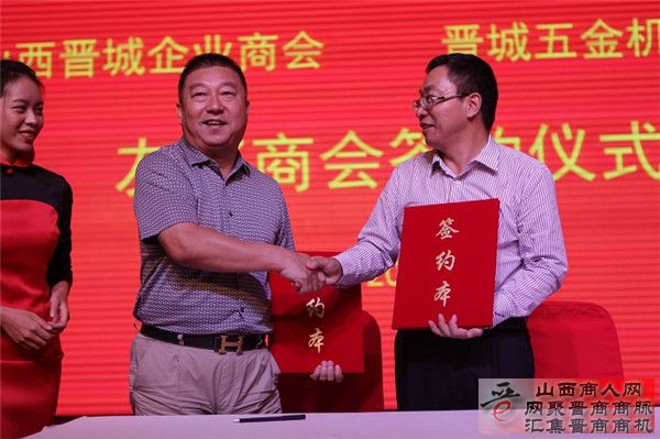 北京晋城企业商会会长郎光辉与晋城五金机电商会会长李文庆签订友好商会协议