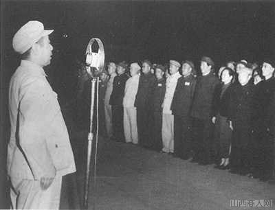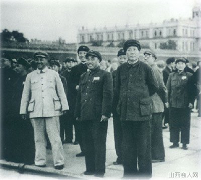 1949年9月30日,毛泽东,朱德,贺龙等在人民英雄纪念碑奠基上。