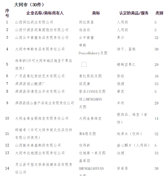 日前,山西省工商局发布著名商标认定公告,2014年山西省共认定324件商标为山西省著名商标。