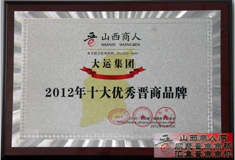 记者从大运集团获知,在2012年12月15日举行的第四届晋商年会上,大运集团荣获“2012年10大优秀晋商品牌”荣誉称号,集团董事长远勤山荣获“2012年百名优秀晋商人物”。