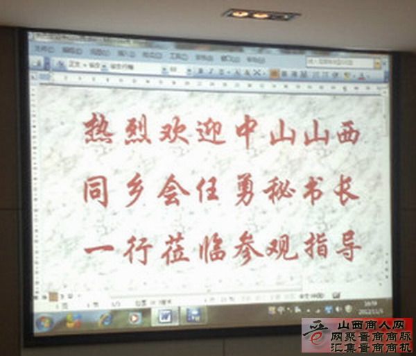2012年11月3日,山西(中山)同乡联谊会部分代表在吴广泽会长的带领下,一行8人组织走访了同乡企业,讨论了有关成立中山山西商会的相关事宜,并对边文虎总经理关于在广东建立晋商会馆的意向进行了深入的讨论。