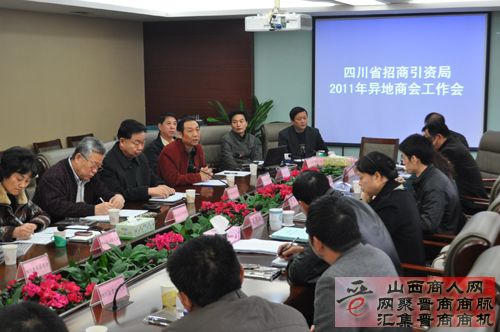 12月1日,四川省招商引资局组织召开了“四川省招商引资局2011年异地商会工作会”,会议由招商引资局党组成员、机关党委书记吴燕翔主持。会上各商会秘书长汇报了2011年工作。省招商局商会联络处处长黄建军就商会年度目标考核工作作了安排部署。吴燕翔书记讲话强调各商会要认真搞好年终总结,通过总结对商会工作进行梳理和进一步规范管理。进一步探讨商会的服务功能,起好桥梁纽带作用。进一步落实商会在凉山美姑“挂、帮、包”工作。四川山西商会常务副秘书长杨庆华参加了会议。