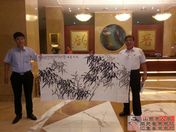 9月3日晚,在第二届晋商大会会议结束后,第二届晋商大会组委会设宴招待各位参会嘉宾。受中国晋商俱乐部的邀请,著名绘画大师杨顺来先生也出席了这次晚宴。杨顺来先生为感谢中国晋商俱乐部的邀请,特创作一幅画作“风清骨峻”赠予中国晋商俱乐部。中国晋商俱乐部荣誉理事长、振东集团董事长李安平也参加了晚宴,李安平与长治市民营企业协会秘书长孙建芳一起代表中国晋商俱乐部接收了这幅画作。