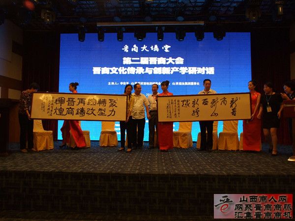 汇聚晋商领袖,分享晋商智库,共谋再振雄风。在第二届晋商大会胜利召开、回家晋商欢聚一堂之际,9月4日下午,晋商大讲堂在太原举办“第二届晋商大会晋商文化传承与创新产学研对话”。参加第二届晋商大会的部分晋商代表、著名晋商文化研究专家学者及本土企业家共300余人参加了论坛活动。在此活动中,山西晋商书画院向晋商大会组委会赠送书法作品和书画院组织我省20多位书画名家创作的书画长卷,成为活动的亮点。组委会代表在作品交接仪式上代表组委会向晋商书画院和创作长卷的书画名家表示衷心感谢。整幅作品20.14米,大气豪迈,纵横捭阖,浑然天成。