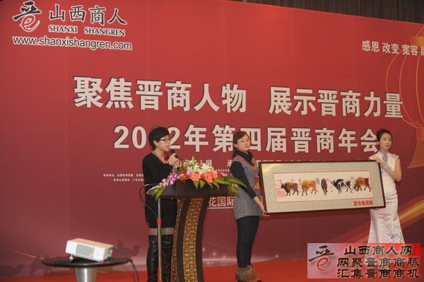 2012晋商年会富怡集团王俊玲:祝愿我们的晋商们牛气冲天 为大会赠送五牛图