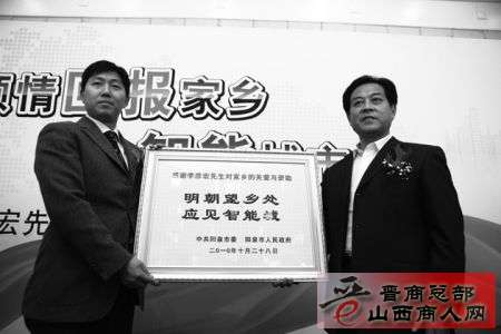百度总裁助理张东晨在接受记者采访时强调说,为家乡捐资1000万元,是李彦宏自己的个人行为。他告诉记者,回报家乡,一直是李彦宏的一个心愿。“李彦宏亲笔书写了一个牌匾,表达对阳泉的祝福,上边写着‘情系桑梓,共建智能阳泉’。从他个人来讲,他时常回到山西回到家乡来看望,这次只是其中的一个部分。之前李彦宏先生曾经给北大捐助了1000万元设立‘李彦宏回报基金’,其中专门设立了一个奖项,专门奖励山西籍的北大学生。”