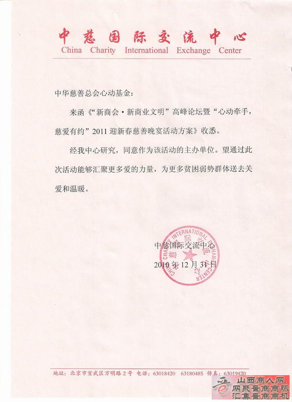 为弘扬慈善精神,传播慈善理念,在新春佳节来临之际汇聚爱的力量,心动基金拟利用自身资源优势,在京组织“新商会•新商业文明”的高峰论坛和“心动牵手,慈爱有约”2011迎新春慈善晚宴。