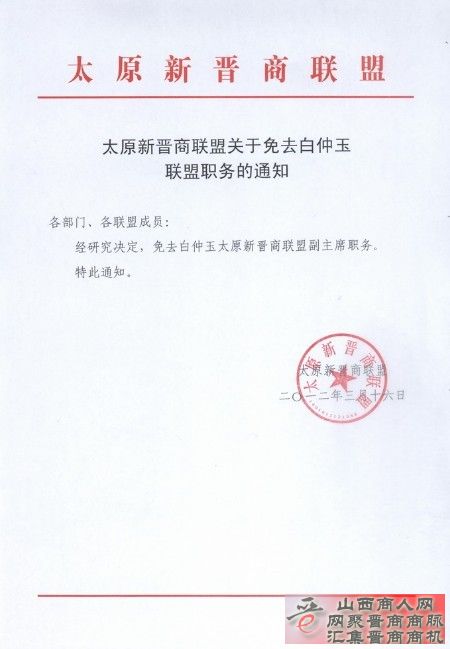 申维辰等领导不再兼任太原新晋商联盟主席团有关职务