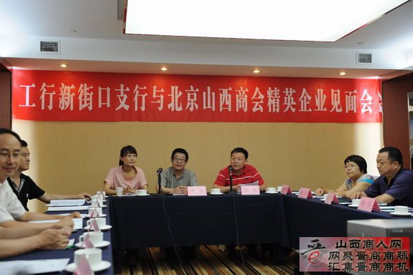 为构建在京山西企业金融服务平台,满足在京山西企业的融资生产、金融服务的需求,实现强强联合,优势互补,营造银企合作的良好局面,北京山西企业商会于2011年7月22日举办了“北京山西企业商会精英企业和中国工商银行北京新街口支行专场见面会”。商会副会长孙哲、黄治华、兰天宇、林多及部分会员企业参加了见面会