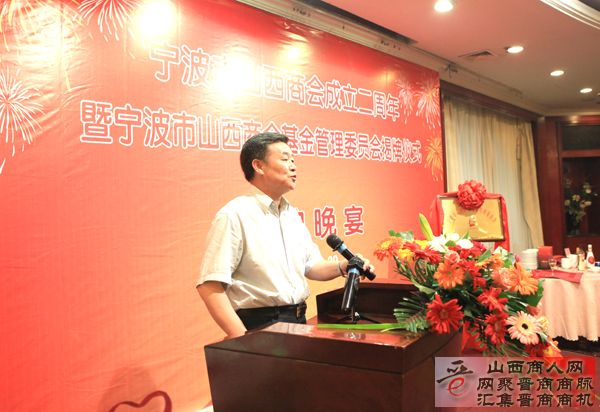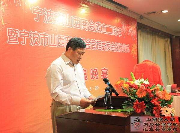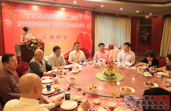 当晚,在新舟宾馆宴会厅,宁波市山西商会专项基金管理委员会成立仪式暨商会成立两周年庆典在一片热烈气氛中举行。市民政局秦孝进处长宣读了专项基金管理委员会成立的决定书,在一片掌声中,商会新聘任顾问、原宁波市委常委、原宁波军分区司令武晋宁与刘志旺会长共同为基金管理委员会揭牌。随后,武晋宁顾问发表热情洋溢的讲话,高度评价了宁波市山西商会成立两年来取得的成果,以及在甬的山西藉企业和各界人士在宁波努力创业,团结进取的良好局面。武晋宁顾问说,山西人有着勤劳和智慧的传统,晋商的诚信敬业名满天下,宁波市山西商会在大家共同努力下,有着越来越宽广的前景和未来。刘志旺会长致祝酒辞,对所有支持和关心商会事业的各界人士表达了谢意,庆典在大家欢乐的交流和精彩的文艺节目中圆满结束。