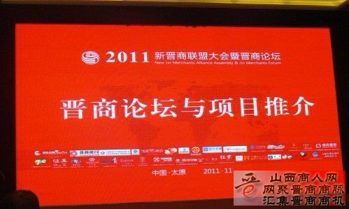 2011年11月4—5日,由太原市贸促会、太原国际商会、太原新晋商联盟承办的“2011新晋商联盟大会暨晋商论坛”在太原花园国际大酒店隆重召开。省、市领导陈川平、廉毅敏、荣彤、张金旺等出席了开幕式并致辞。 来自全国乃至世界的各大商帮代表、海内外晋商协会代表、新晋商联盟代表、重庆市山西商会陈明亮会长、王晋剑常务副会长、屈朝辉常务副会长、吴民学副会长、靳斌副会长、闫建锋副会长、朱鹏秘书长、郭翠兵常务理事、郭赵军常务理事、李献东理事、贾志威理事、任艳青副秘书长等单位代表400余人出席参加此次盛会,共同探讨时代变化、寻求合作共赢。大会主要包括2011新晋商联盟大会暨晋商论坛开幕式、晋商论坛、项目推介、平行论坛、签约仪式暨名人酒会等内容。