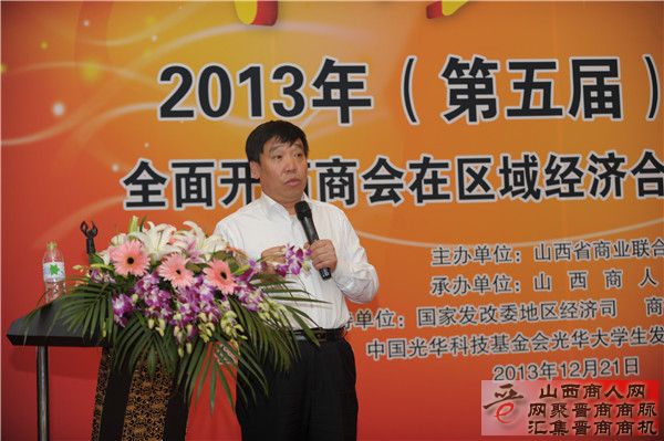 区域经济合作系列高峰演讲中,山西省商务厅党组书记、厅长孙跃进做了以“全面开拓商会在区域经济合作交流中的作用”为题的主题演讲。