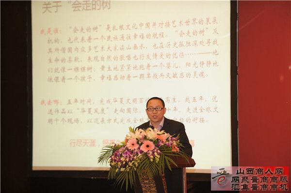 寻找新晋商中国万里行活动总策划、太谷县副县长武晋杰介绍了《金太谷晋商故里晋商情》项目。《会走的树》艺术家为第五届晋商年会嘉宾创作的素描作品在现场进行了展示。