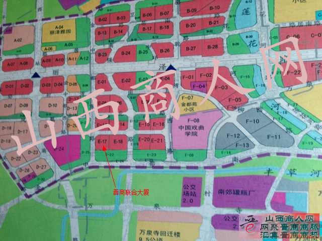 晋商联合大厦位置示意图(图中箭头所指,位于中国戏曲学院西侧)
