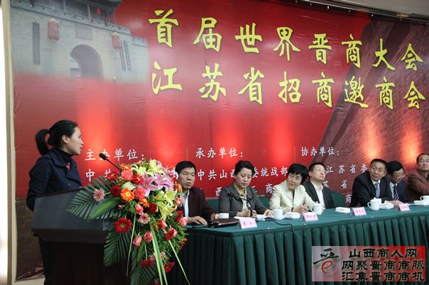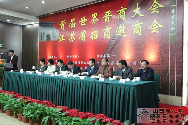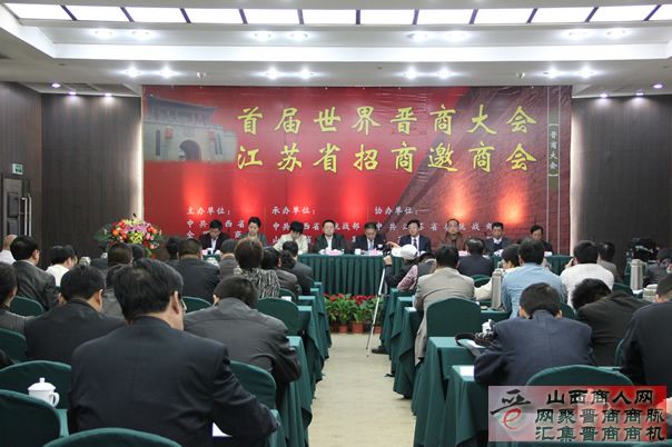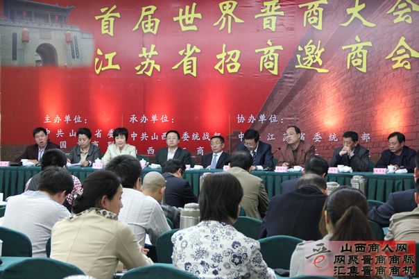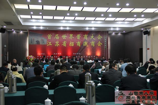 4月3日,首届世界晋商大会江苏省邀商招商会在江苏省南京市的华东饭店举行,为首届世界晋商大会的顺利召开拉开了序幕。山西省委统战部副部长王建新、江苏省委统战部常务副部长、江苏省工商联党组书记邵军、江苏省工商联副主席桂德祥、山西省人民政府驻南京办事处副主任雷向忠、山西省江苏商会会长张灵光、南京市工商联晋商商会会长李会等领导,及南京市工商联晋商商会会员、企业家代表出席了会议。