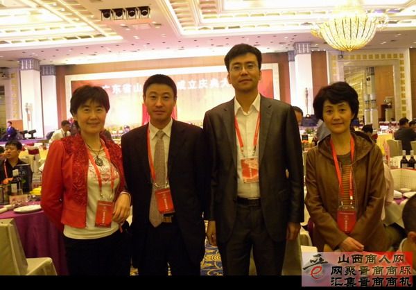 重庆山西商会秘书长朱鹏(右二)与吉林山西商会会长杜继平(左二)四川山西商会常务副秘书长杨庆华(右一)在成立大会上合影