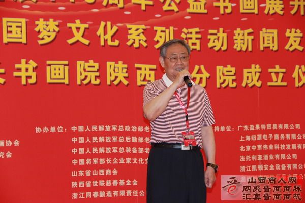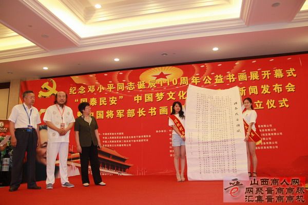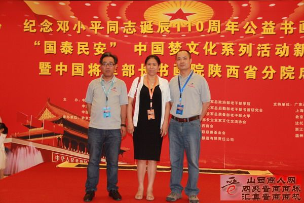 2014年5月31日下午,纪念邓小平诞辰一百一十周年公益书画展暨国泰民安中国梦文化交流进军营公益活动启动仪式以及暨中国将军部长书画院陕西省分院成立仪式在北京京西宾馆隆重举行。