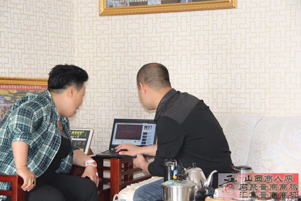 刘文斌向晋商红梅集团董事长孙红梅女士介绍了山西商人网以及中国晋商俱乐部的发展历程,并且向孙红梅董事长展示了历届晋商年会视频和晋商八友记的相关视频。