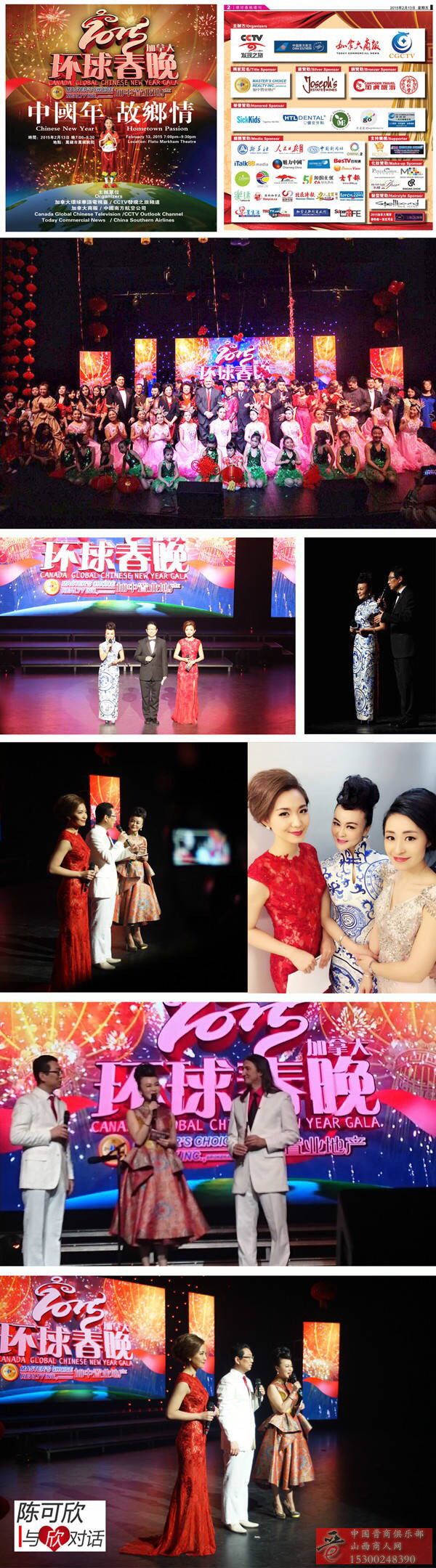 陈可欣由于10多年来一直以中国古典女性的亲切美丽形象,大气的舞台风格,成功的主持过很多大型的春晚以及商业活动,得到很多企业以及观众的好评,被广大观众称为具有“神韵之声”,此次受邀代表中国中央电视台主持2015年加拿大环球春晚。