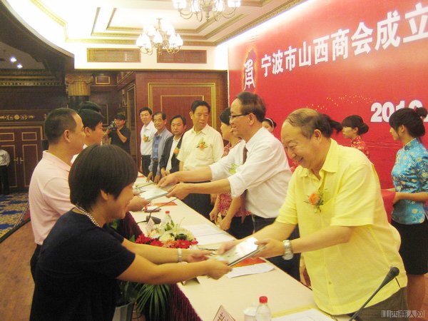 大会上,晋甬两地领导为第一届宁波晋商商会理事会成员颁发了证书。