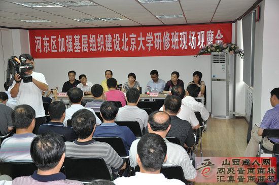 2012年6月26日下午,“河东区加强基层组织建设北京大学研修班现场观摩会”,在天津山西商会大会议室召开,区委常委、区委组织部部长靳昕出席。天津山西商会党委书记、会长张世伦向来自全区各基层单位的68位领导干部,介绍了近年来天津山西商会在区委的正确领导和大力支持下,以基层党建为抓手,加强商会及会员企业党组织建设,实现科学发展的做法和体会。区委组织部领导在讲话中,对天津山西商会加强基层组织建设,实现“两个全覆盖”,推动会员企业又好又快发展给予高度评价。与会领导参观了商会的现代化办公环境和即将开播的“视频网站采编室”。