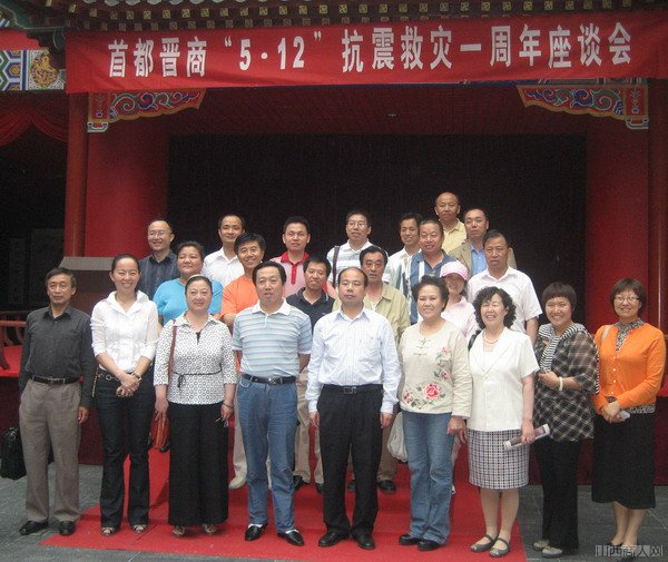 从此次座谈会上,山西商人网了解到,从去年5.12地震发生之后,到1年后的今天,北京晋商商会一直作为首都晋商的关键组织者,在四川灾区一直进行了志愿工作,目前仍然还有1名副会长和副秘书长战斗在四川灾区。