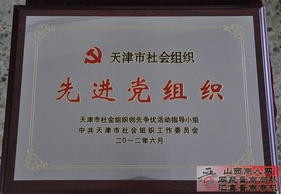 2012年6月26日,天津市社会组织创先争优活动指导小组和市社会组织党工委召开隆重的“天津市社会组织党建工作“七一”表彰暨推动会议”。我天津山西商会获得三项殊荣,即商会党委荣获“社会组织先进党组织”,张世伦会长荣获“优秀共产党员”,天津山西商会获“特色党日活动”。