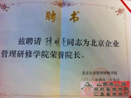 重庆山西商会陈明亮会长被聘为北京企业管理研修学院荣誉院长