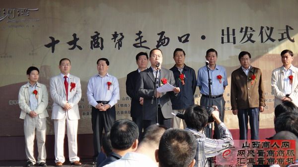 9月4日由新晋商杂志社承办的十大商帮走西口活动在古城平遥举办壮行会,沿着当年晋商走西口足迹,十大商帮商界领袖参观了乔家大院、雁门古关、右玉玉龙马场、杀虎口、呼市、鄂尔多斯,多场文化沙龙,使十大商帮领袖被晋商留下的深厚文化深深打动。
