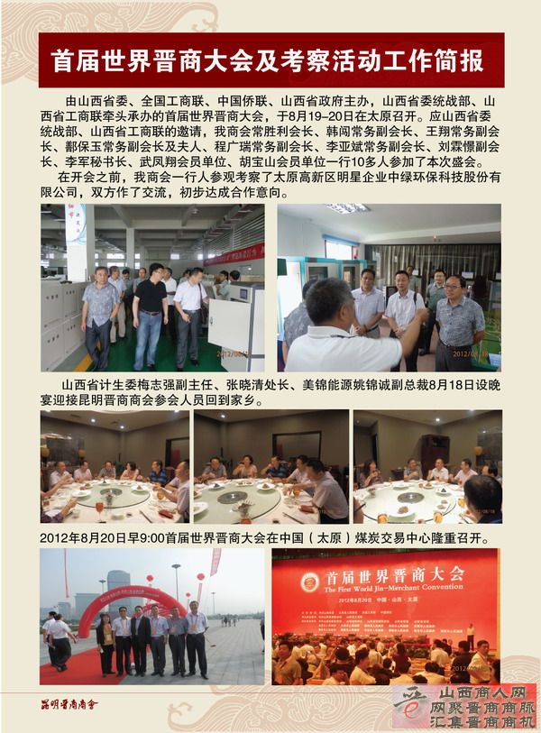 昆明晋商商会首届世界晋商大会及考察活动简报