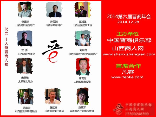 - [晋商资讯] 2014十大新晋商人物榜单 (2014-12-30 13:22:22)