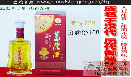 菖蒲酒2000年历史 山西名酒 35°华表礼菖蒲(1瓶*275ML) 原价268 团购价108 远在汉代已名噪酒坛,为历代帝王将相所喜用,并被列为历代御膳香醪 末代皇帝溥仪的御弟溥杰先生推荐 中国酒界酿造权威、著名品酒大师戴仁泽教授高度赞誉。