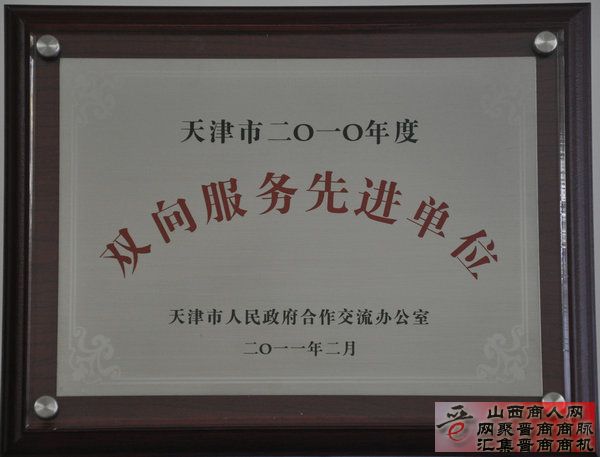 天津晋商会天津市2010年度双向服务先进单位