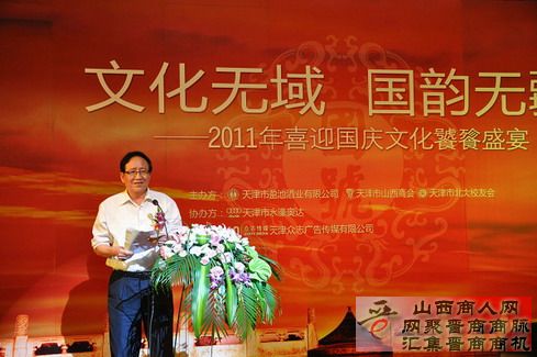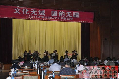 金秋时节,秋高气爽;翰墨飘香,琴瑟悠扬。在国庆62周年即将到来之际,2011年9月26日,由天津市山西商会主办,会员企业天津众志广告传媒有限公司承办的“2011年喜迎国庆文化饕餮盛宴”,在湖光山色、风光旖旎的天津市人大代表进修学校举行。天津市山西商会、津门晋商企业家以及应邀的各界精英约200余人出席。