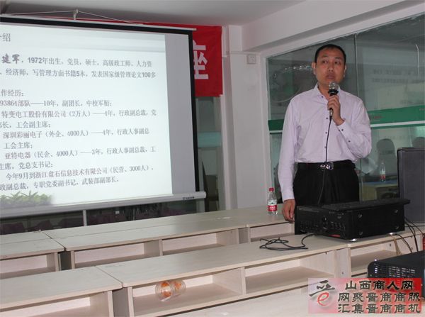 2011年10月13日下午,宁波市山西商会特邀杭州盘石公司副总裁、党委副书记崔建军在新世纪学校给商会会员主讲了“中小企业员工管理讲座”。