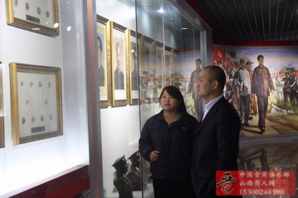 刘文斌秘书长认真了解潞宝集团毛主席博物馆收藏的毛主席像章介绍