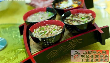 农家四小碗,也是一款¾典的山西菜。由豆腐、(扣肉)肉片、丸子和粘米枣糕(沁州黄就是主要配料之一)组成。小米和红枣相衬,色泽鲜美,勾起人的无限食欲。两萦两素,主食和菜搭配合理。