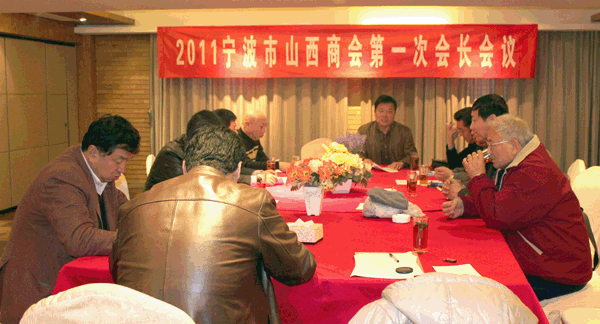 2011年3月6日在走西口莜面村召开了“2011宁波市山西商会第一次会长会议”。会上讨论通过了2011年商会工作计划和会长、副会长轮值制度。与会人员对商会成立以来的工作给予了充分的肯定,对前景充满了信心。