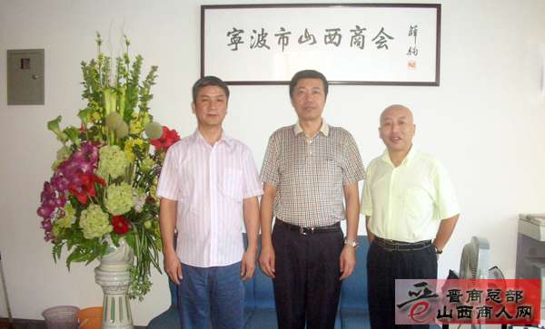 世界弘扬关公文化协会名誉会长王洲和宁波市舟山商会秘书长周定芳考察宁波晋商会