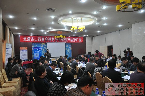 2011年11月25日,由天津山西商会建材分会举办的供热产品推广会,在晋滨国际大酒店召开,商会会员约百余人出席。会上,部分会员企业介绍了新研发的具有高科技水平的供热计量产品。市供热办领导在讲话中,对天津山西商会建材分会为天津供热市场提供高科技系列产品给予高度评价。