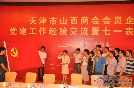 2012年7月1日,在党的91岁生日这一天,天津山西商会党委举行预备党员宣誓仪式,11名基层民企的新党员,在商会党委副书记、副秘书长张爱梅的领誓下庄严宣誓:志愿加入中国共产党,为共产主义奋斗终身。近年来,天津山西商会党委始终坚持“双培”方针,即:把党员培养成企业骨干,把企业骨干培养成党员,不断加大培训力度,一批又一批会员企业骨干成为党的新鲜血液,壮大了党员队伍,增强了党组织的战斗力,为推动企业科学发展做出了贡献。