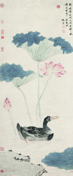春江水暖鸭先知,沈周的《莲塘浴凫图》将为今春的拍卖市场带来热度,此帧写荷塘浴鸭,疏着叶,淡着花,气味冲淡而神韵超逸,书卷之气溢出而精神却轩昂沉酣。此图旧为清内府收藏,钤乾隆五玺,复有“赐本”一印, 是乾隆赐给宠臣彭元瑞的。此图保存精良,历经五百余年而“精、气、神 ”完美如初 。石田画身前即受时人追捧,身后更为历代藏家所宝爱,然伪作居多,真迹难求。而如此图之清逸入神者尤为历年拍卖所未见,至为难得。识者当知爱重之。
