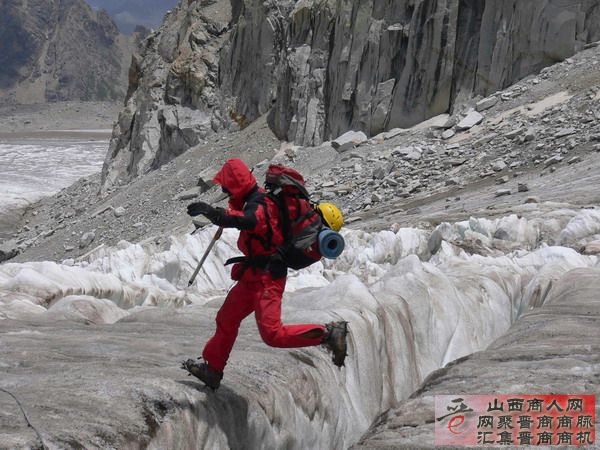 石磊必须跨越过去,有一米多宽,裂缝的边缘是一些碎冰,穿着冰爪还是担心会吃不上力,冰裂缝深不见底,从里面透出幽蓝色的光